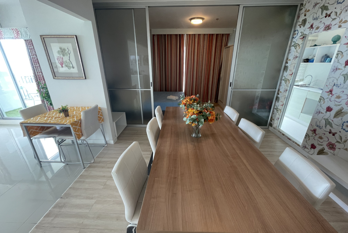 Discover a rare opportunity to own a beautifully designed 4-bedroom, 4-bathroom corner unit at Baan Kiang Fah Condominium, offering 150 sqm of modern living space and breathtaking sea views at Level 21.